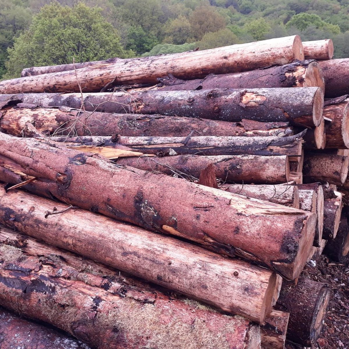 Nous vous livrons du bois en grumes par camion. Le bois frais provient de forêts locales certifiées PEFC dans la région des Ardennes.