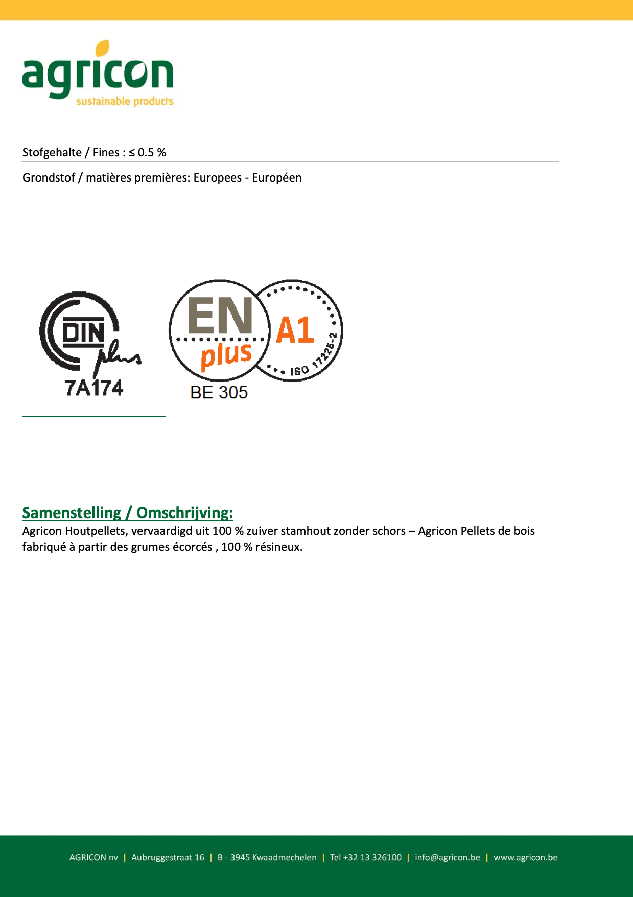 Agricon Pellets de bois fabriqué à partir des grumes écorcés 100 % résineux.